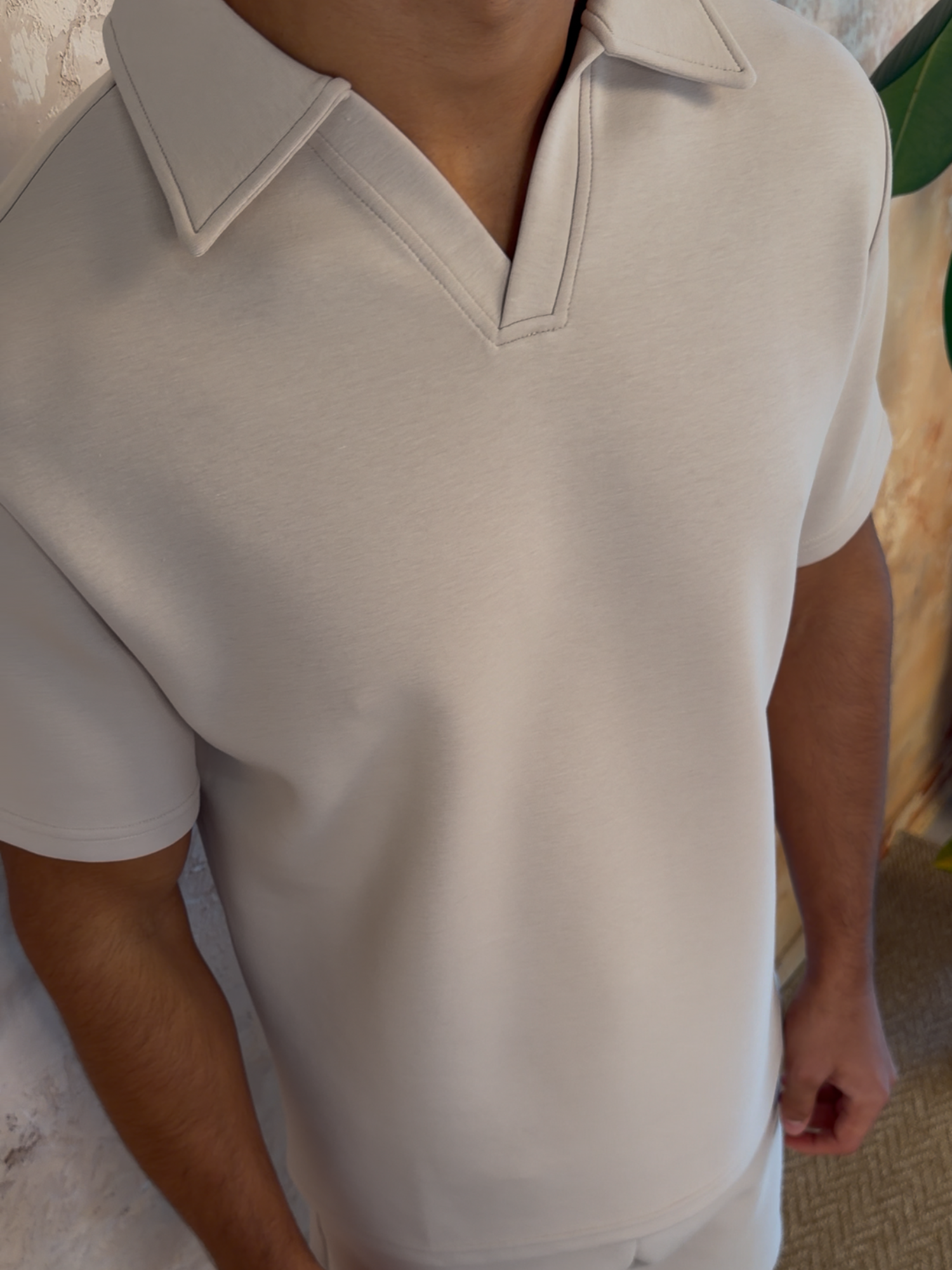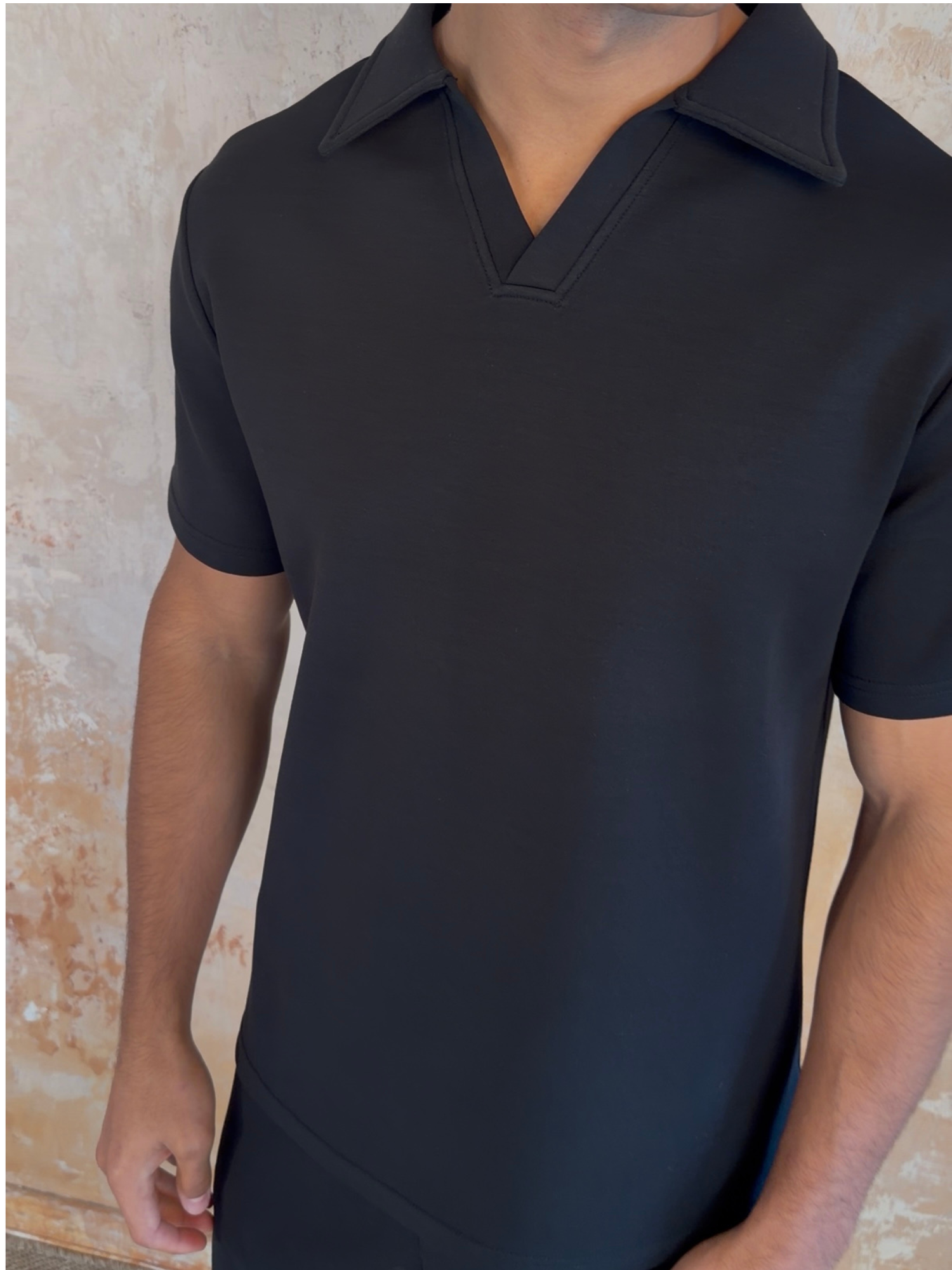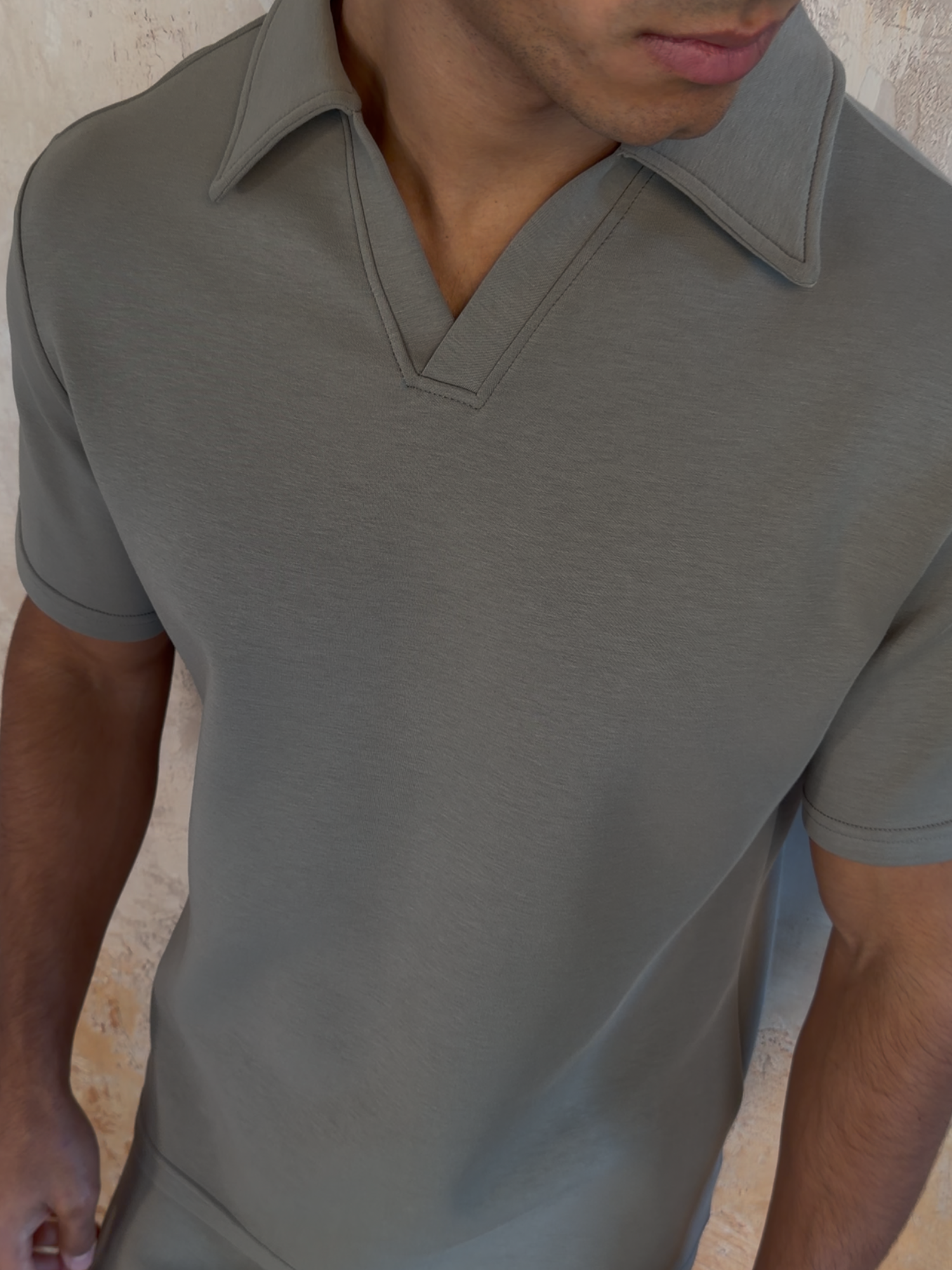 - Slim fit jersey open collar top